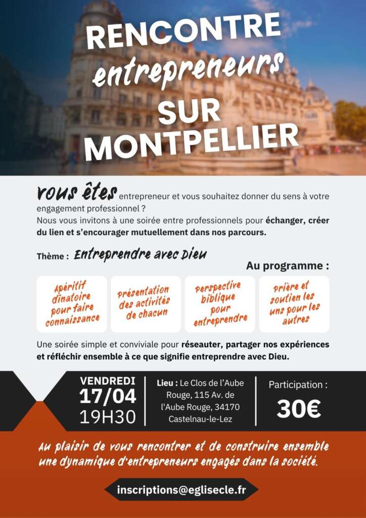 Une soirée simple et conviviale pour réseauter, partager nos expériences et réfléchir ensemble à ce que signifie entreprendre avec Dieu.